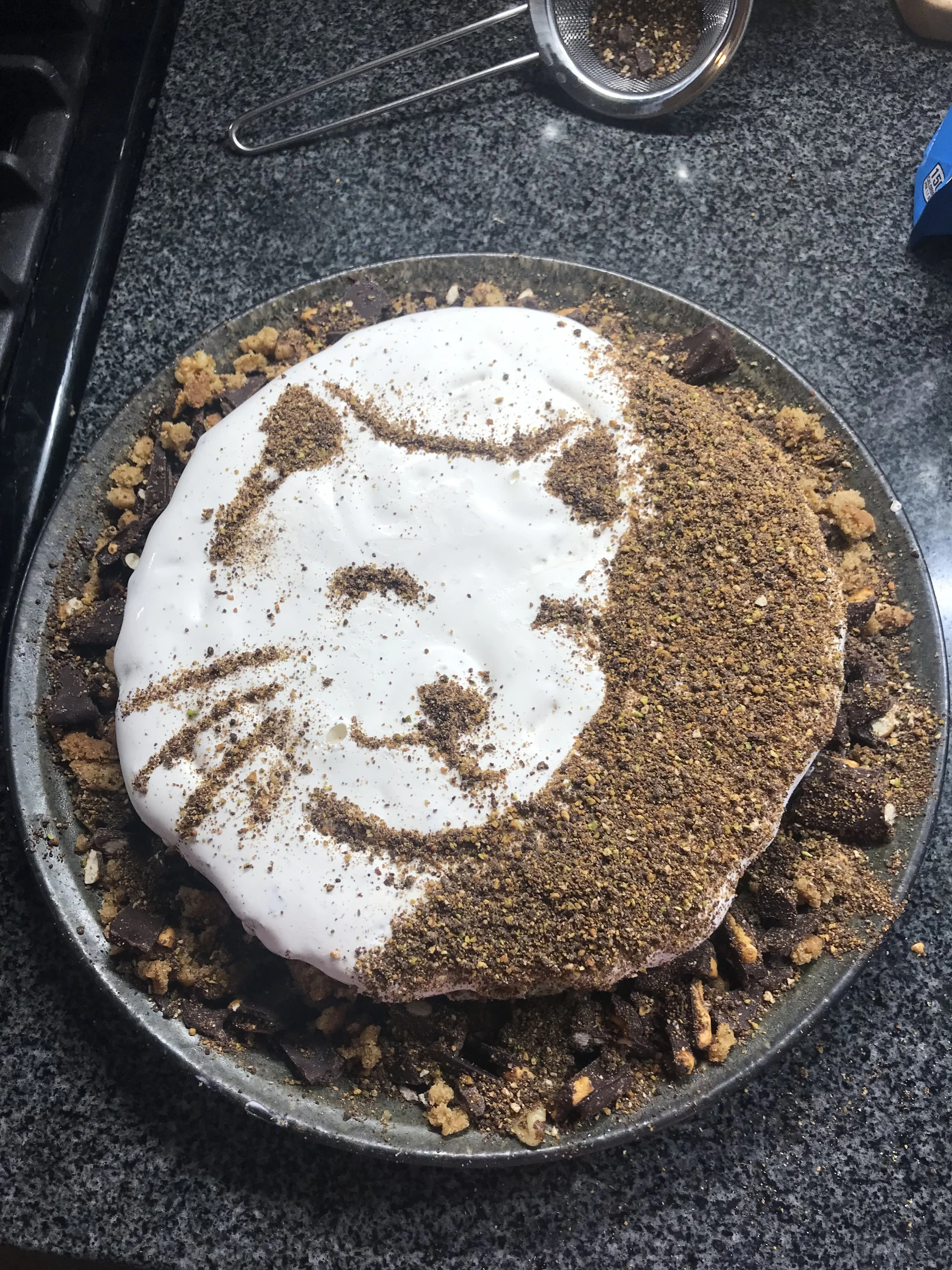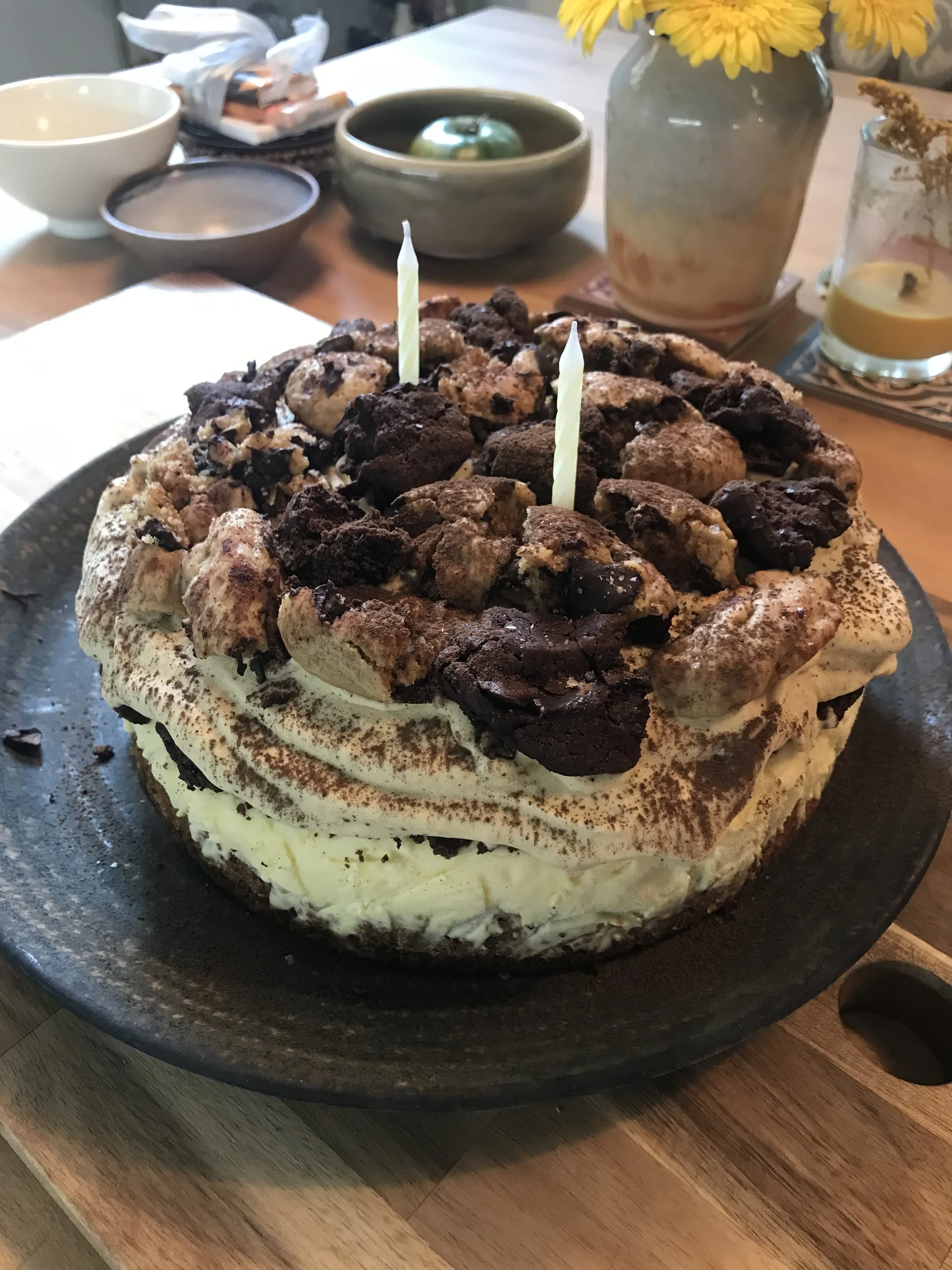 Chocolate chip cookie cake, high west bourbon ice cream, double chocolate cookies, cortado ice cream, cookie crumbles